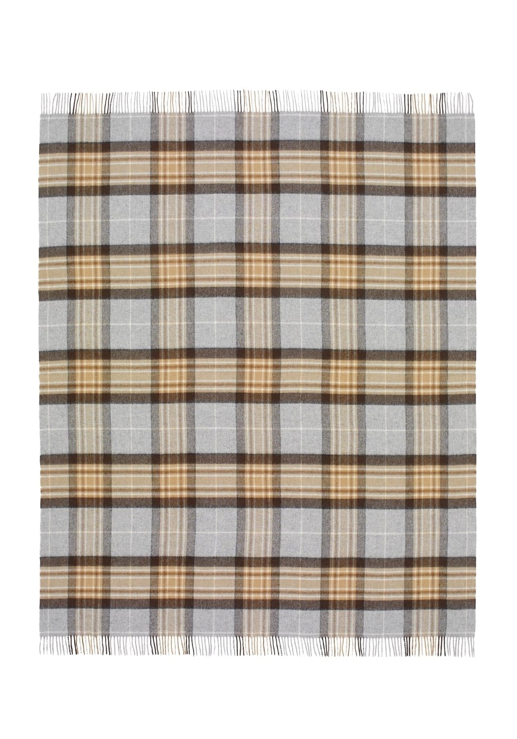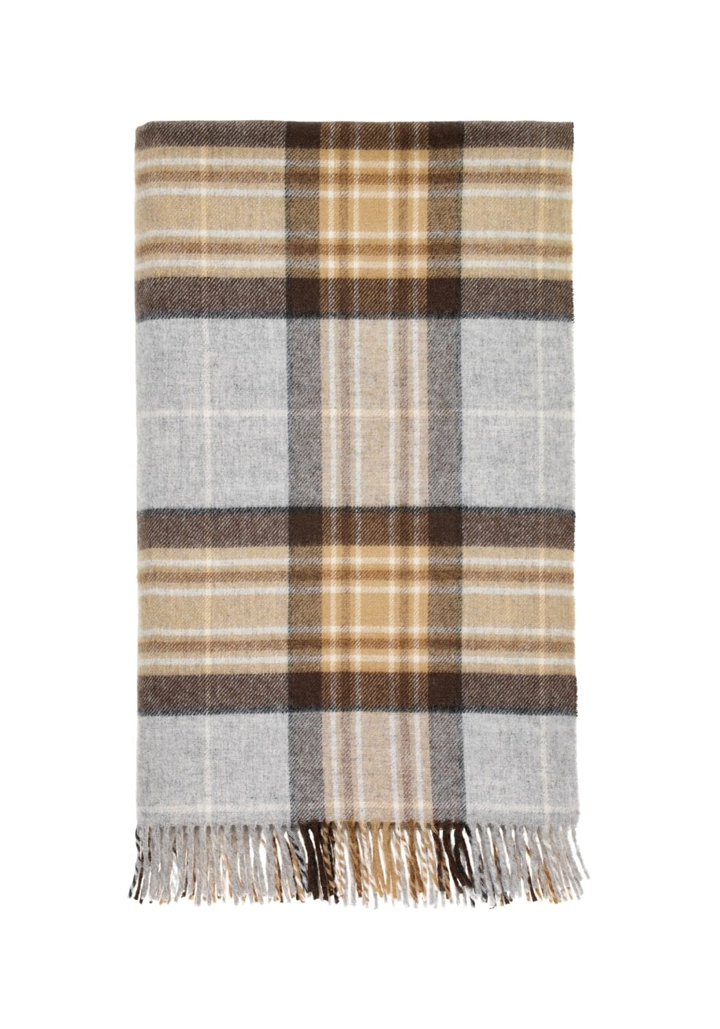 A cozy muddle of toasty browns and moody grays with that can't-fake-it fringe that looks right at home tossed over your reading chair or wrapped around you during those Sunday afternoon naps. Farm-traced British wool that carries the quiet dignity of tradition while somehow knowing exactly where it belongs in your thoroughly modern life.