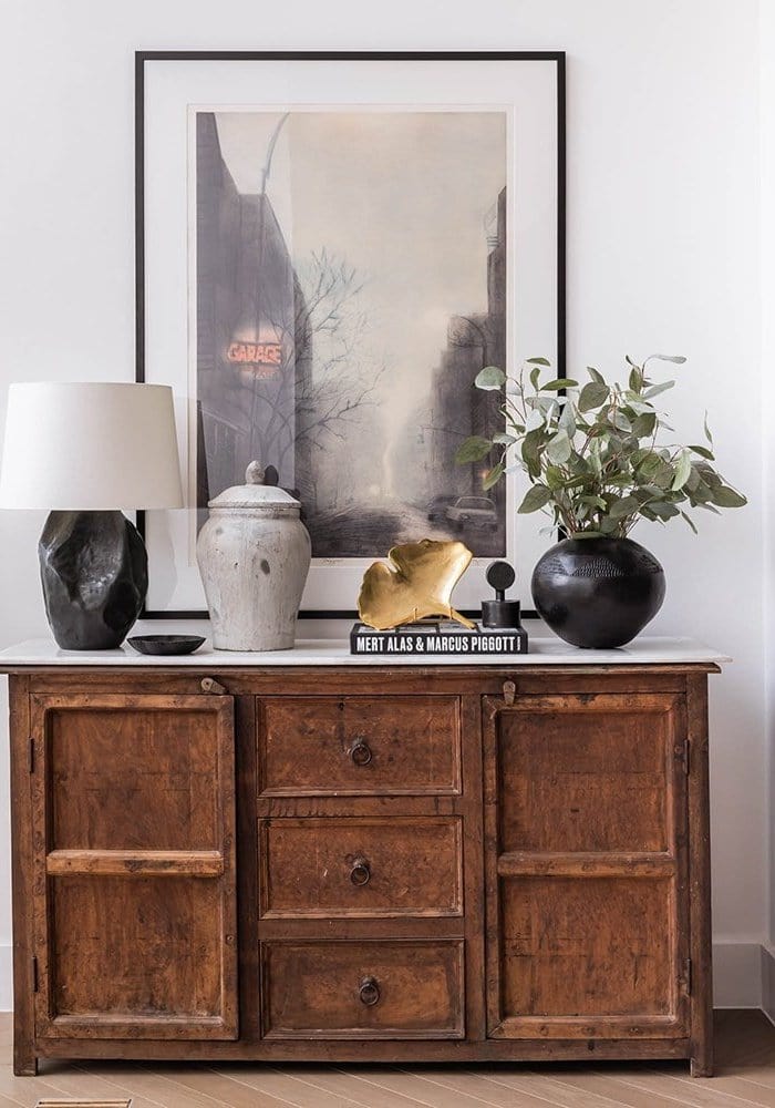 JJ styles hers with sprigs of cherry blossom, and has paired it with the smaller one on a side table. It’ll also look fabulous with palm fronds, or perhaps some pussy willow – or even just leave it empty, honestly. That way, you can keep the lid on, which gives the piece a taller, more slender profile.