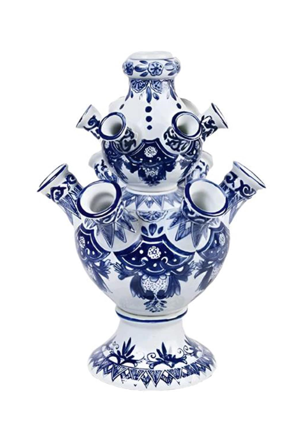 Inspired by 18th century Dutch tulip vases, the Deft Tulipière is a piece of history that's become the biggest trend of the year. Every vase is handpainted. Its clean lines and brick shape is a perfect mix of modern and vintage. This piece just as striking empty as it is overflowing with tulips or any other flower. This is perfect for non-florists, flowers simply arrange themselves!