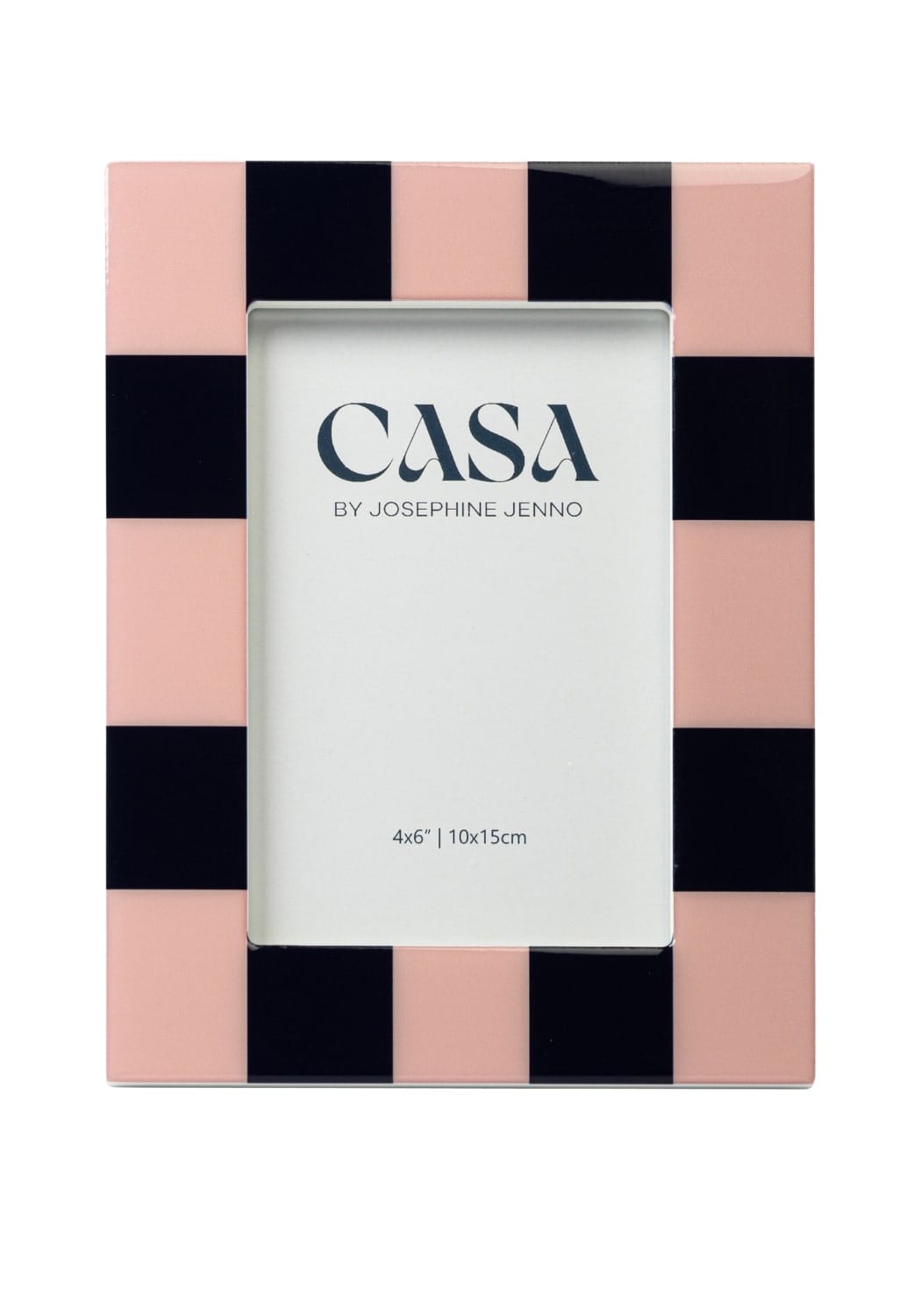 This delightful frame combines soft pink and white tiles in a geometric pattern, offering a subtle yet stylish backdrop for your photographs. Its gentle hues and unique design make it a versatile piece that can complement various decorating styles.