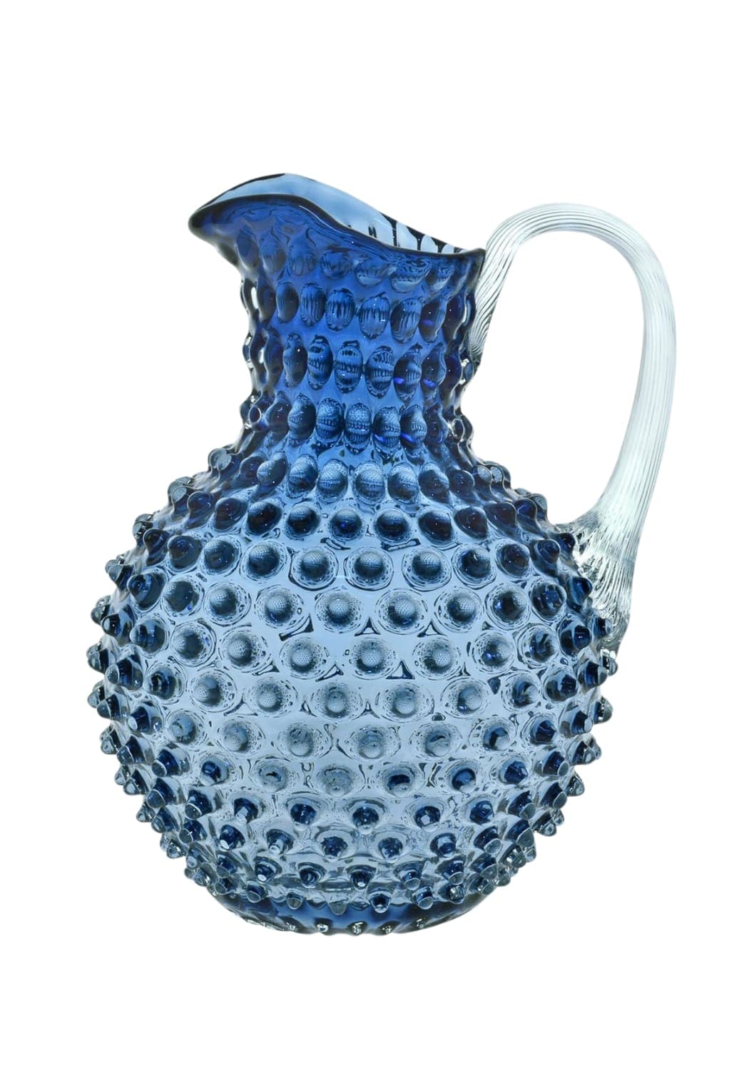 This stunning cornflower blue glass jug feels surprisingly substantial in your hands, its cool surface immediately refreshing against your fingertips. The intricate hobnail texture creates a pleasing pattern of raised bumps that massage your palms as you grip it, providing both tactile interest and a secure hold even when condensation forms on the exterior. When filled with ice water on a warm day, the glass becomes deliciously cold, sending a pleasant chill up your arms as you lift its generous 2-litre weight.