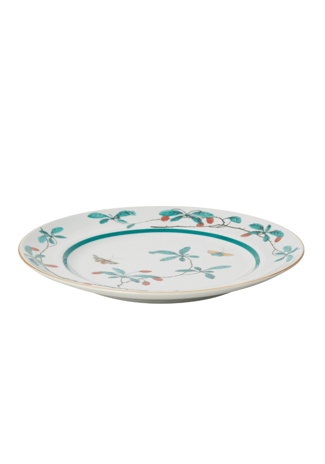 A whisper of jade vines and ruby berries that dance across creamy porcelain, where curious butterflies pause as if deciding which treat to sample first. Hand-painted artistry that somehow manages to be both a timeless collectible and the perfect companion for everyday moments that deserve a touch of unexpected beauty.