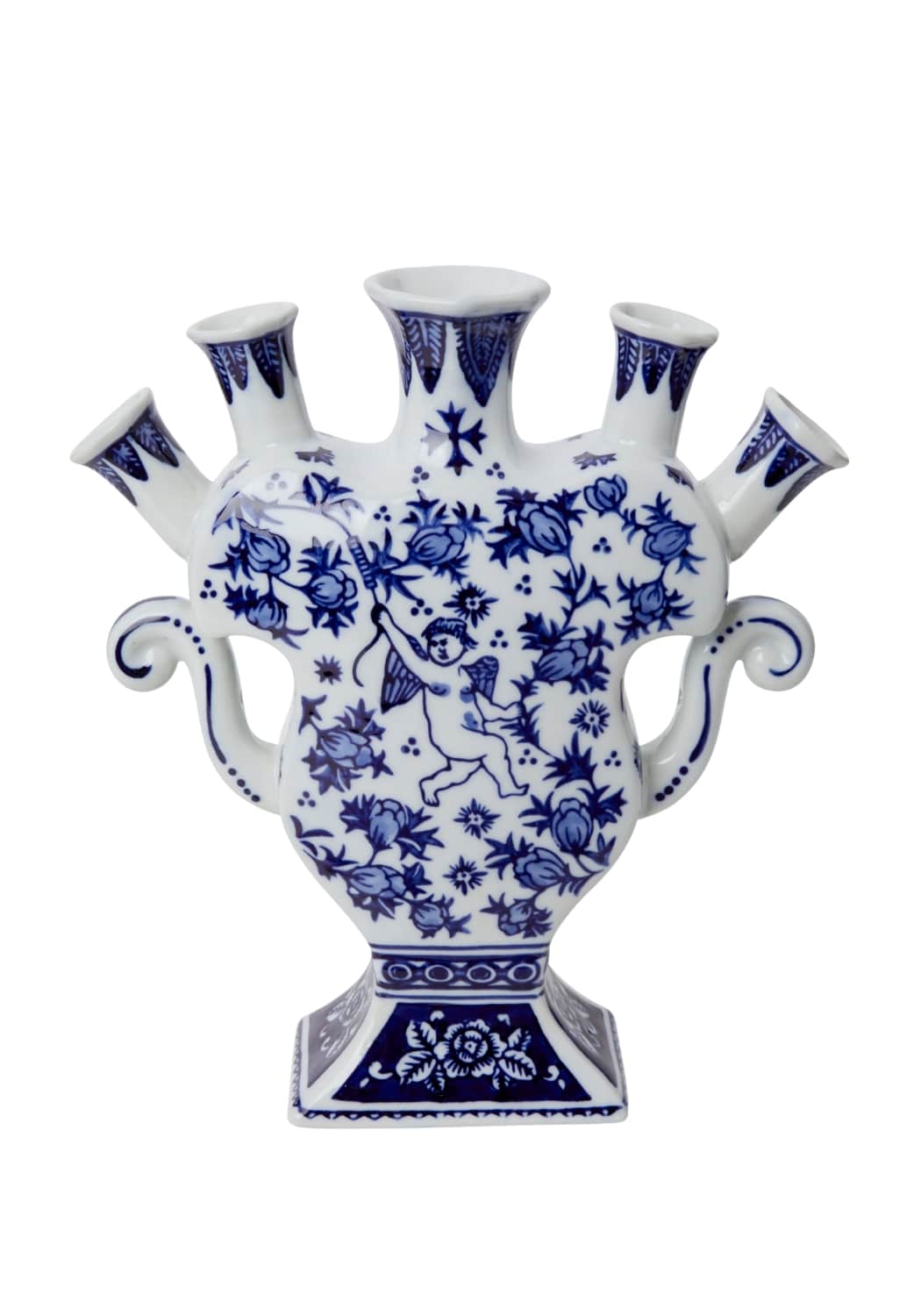 Inspired by historic Dutch tulip vases, the Deft Tulipière is a sculptural vessel designed for thoughtful, individual flower placement — each opening becomes a small stage for beauty. Every vase is handpainted and glazed. Its clean lines and rectangular body invite creativity, making this piece just as striking empty as it is overflowing.