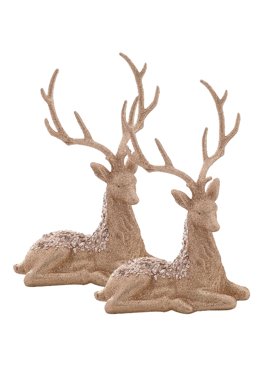 This large-scale deer lends an air of quiet grandeur to mantels, consoles, and entryways, its gently shimmering finish catching the light like fine jewels. An effortless way to bring grace and presence to your festive styling.