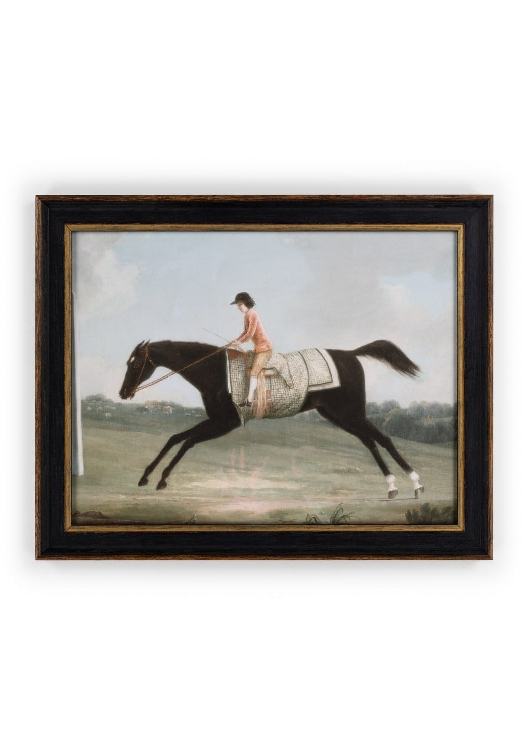This spirited thoroughbred clearly knows it's the star of the show, captured mid-gallop in a classic gold frame that screams "country house library." The kind of piece that makes you want to don tweed and discuss bloodlines over brandy.